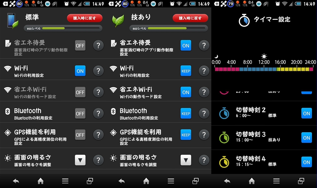 『標準設定/技あり設定/タイマー設定』シャープ AQUOS PHONE ZETA SH-02E docomo akibow38さんのクチコミ掲示板画像1/2