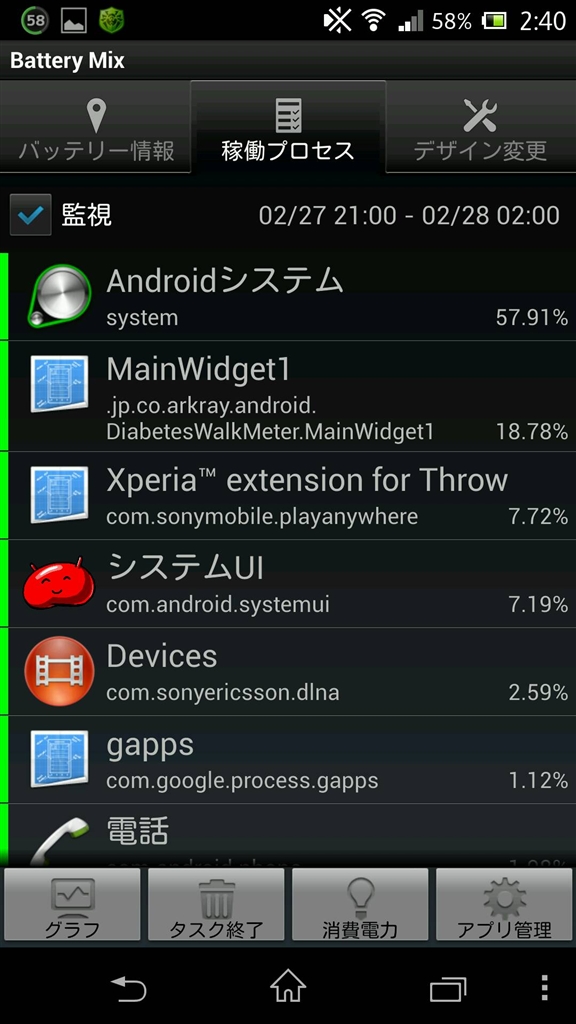『稼働プロセス(サンプル)』シャープ AQUOS PHONE ZETA SH-02E docomo なか〜た♪さんのクチコミ掲示板画像2/3