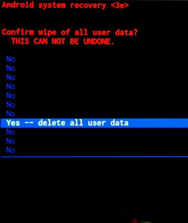 "Yes --- delete all user data"→実行