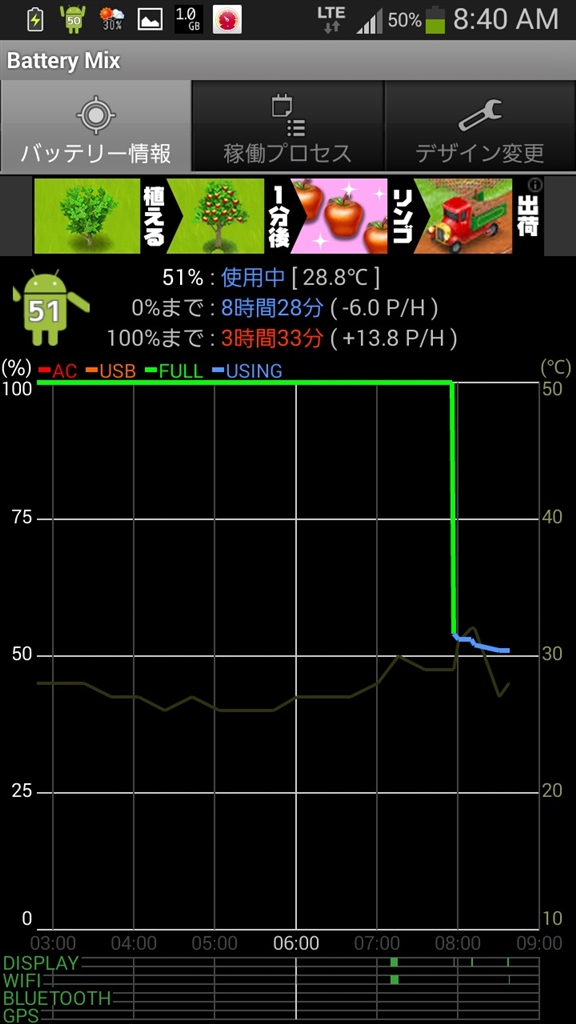 今朝充電機から外した途端に100%から51%に