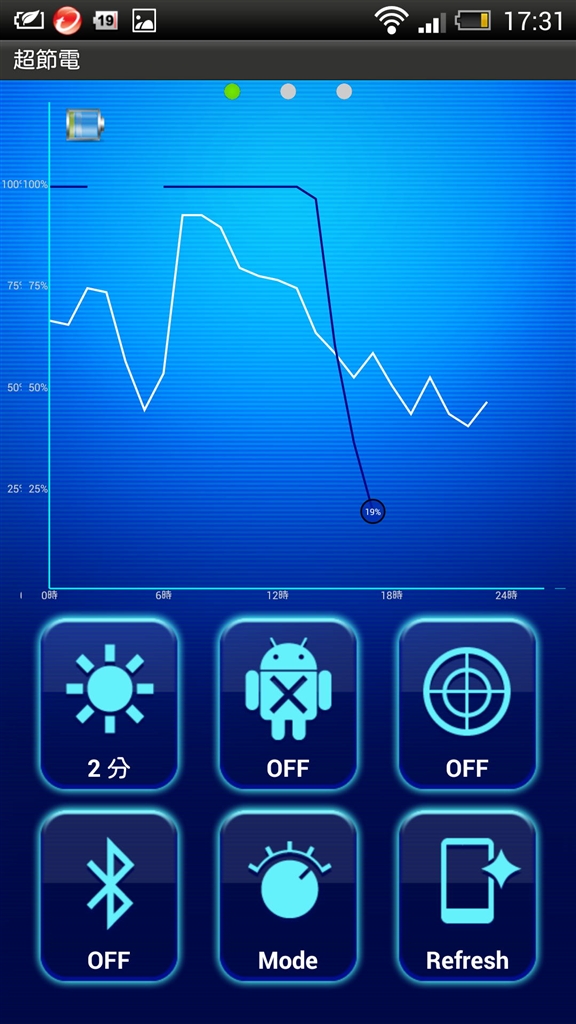 『超節電のグラフです(深夜は電源OFF,朝ONにしました)』HTC HTC J butterfly HTL21 au ひーーさんさんのクチコミ掲示板画像1/1