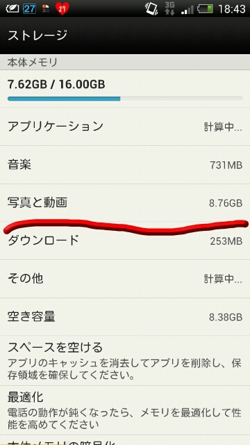 『内蔵ストレージ』HTC HTC J butterfly HTL21 au ちる♂さんのクチコミ掲示板画像1/2