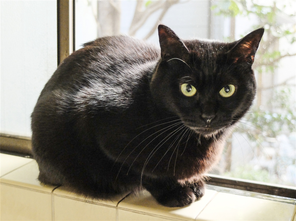 風呂の窓から網戸越に外が気になる箱入り娘