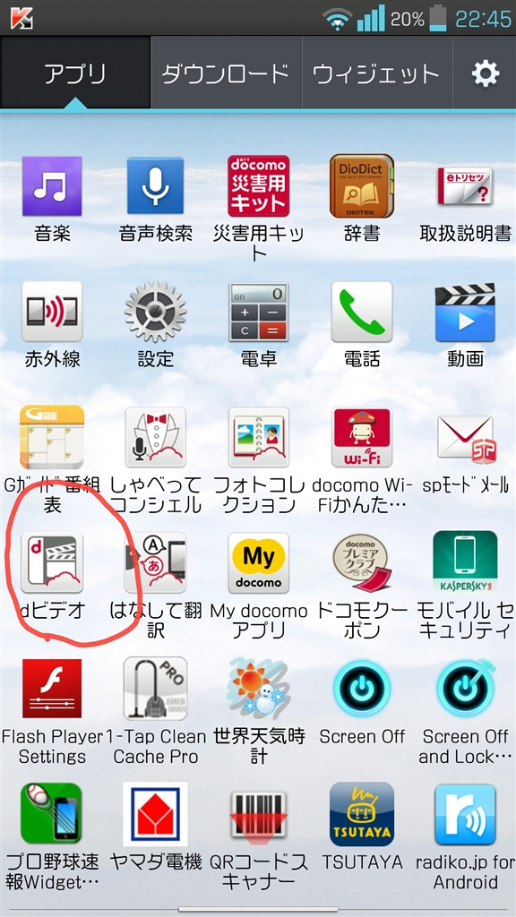 赤丸で囲ったアイコンがdビデオのアプリです