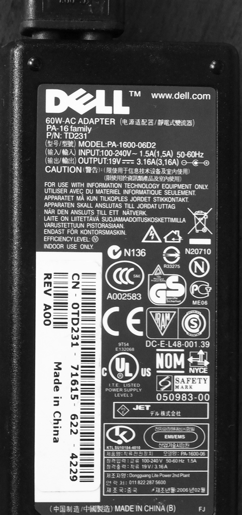 『DELLのACアダプタ PA1600-06D2』ASUS U24E 天然水コレクターさんのクチコミ掲示板画像1/1