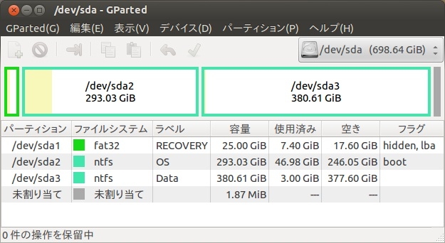 事前に内蔵HDDをリサイズするのがミソです
