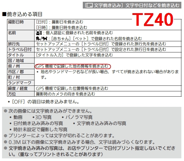 文字や日付の焼き込み(TZ40)