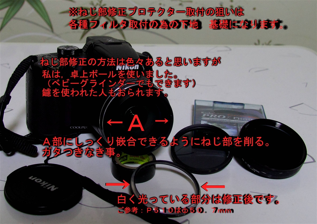 『1.フィルタ取付準備』ニコン COOLPIX P520 ずっこけダイヤさんのクチコミ掲示板画像1/2