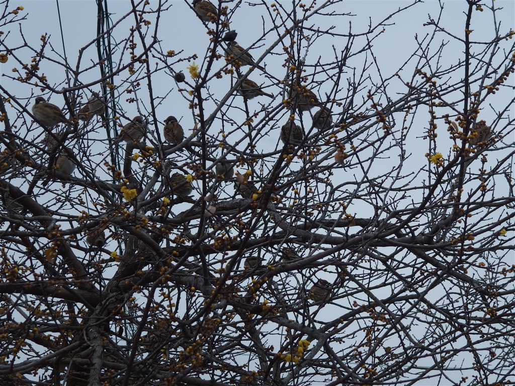 スズメと蝋梅