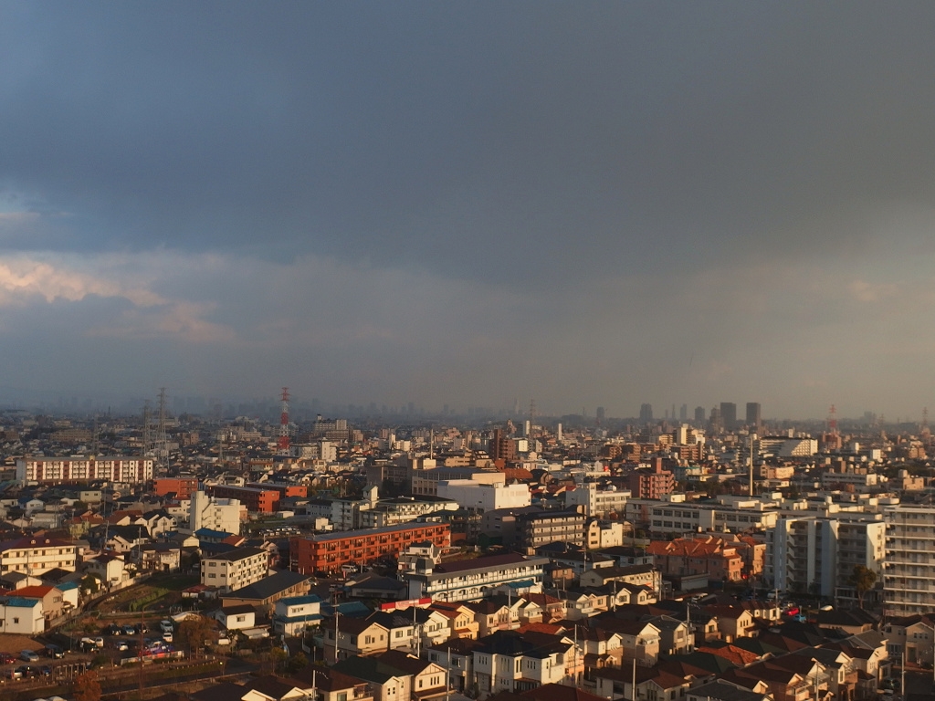 大阪上空は一段と暗い・・・ ひどい雨かも・・・