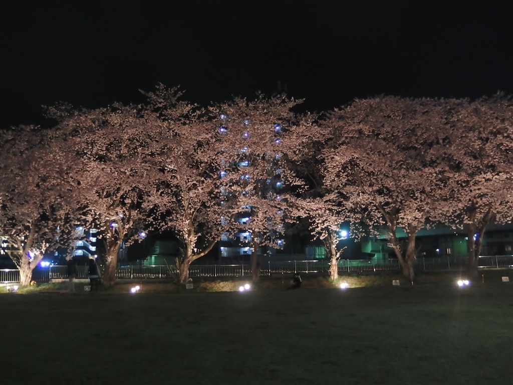 地下鉄駅傍の桜ライトアップ