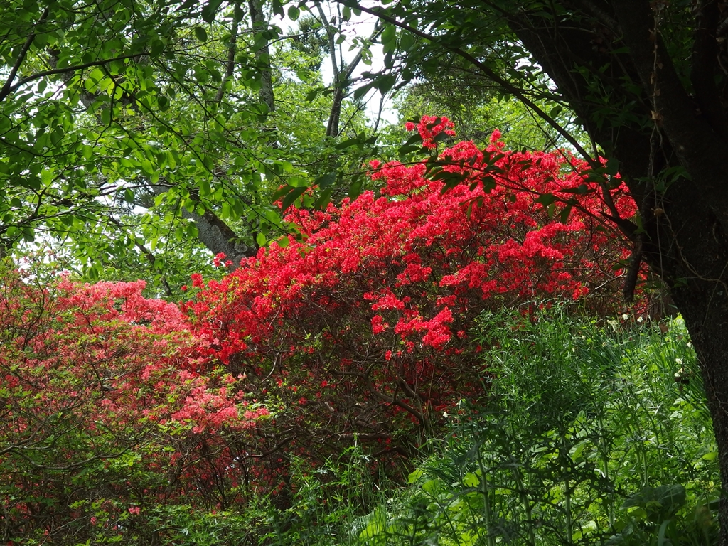 神社のツツジが鮮やかでした