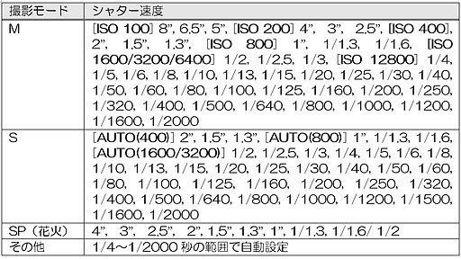 『撮影モードと設定可能なシャッター速度』富士フイルム FinePix F900EXR 青乱雲さんのクチコミ掲示板画像1/2