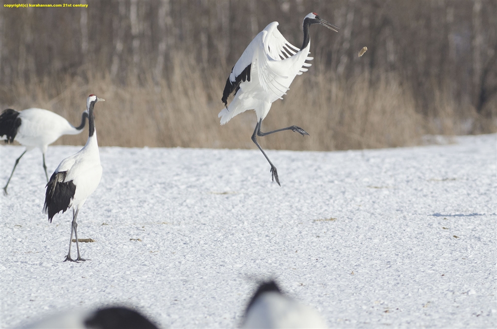 トウモロコシの芯で遊ぶ丹頂。これ位77EDIIなら朝飯前。