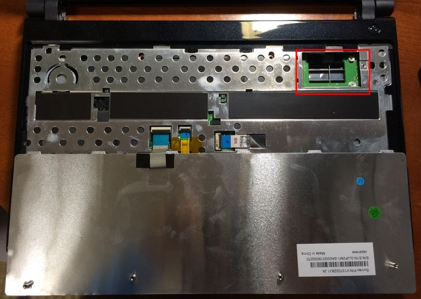 キーボードをめくると、mSATAのスロットが出てきました。