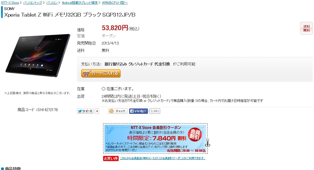 Xperia Tablet Z Wi-Fiモデル SGP312JP