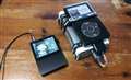 雑誌「ネットオーディオ」にも粘着テープを貼ってポタアンと組み合わせた携帯性の良さをうたっていました♪