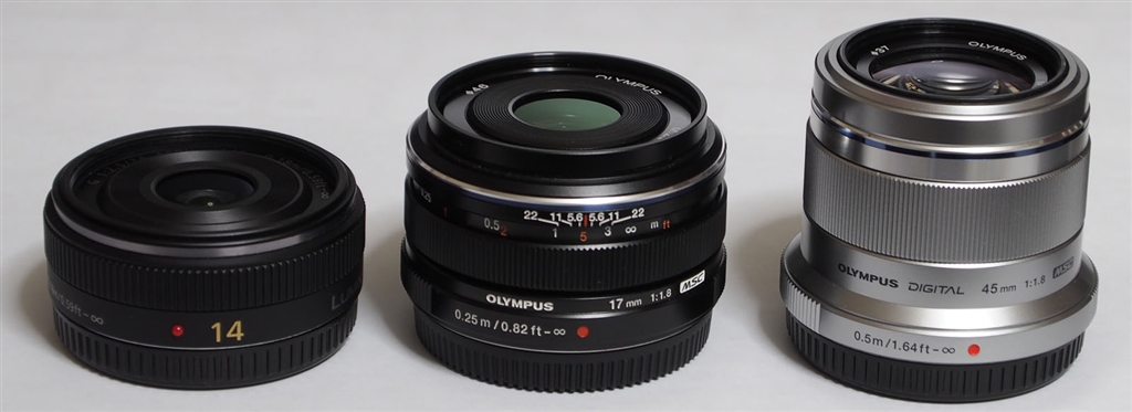 14mmF2.5、17mmF1.8、45mmF1.8サイズ比較