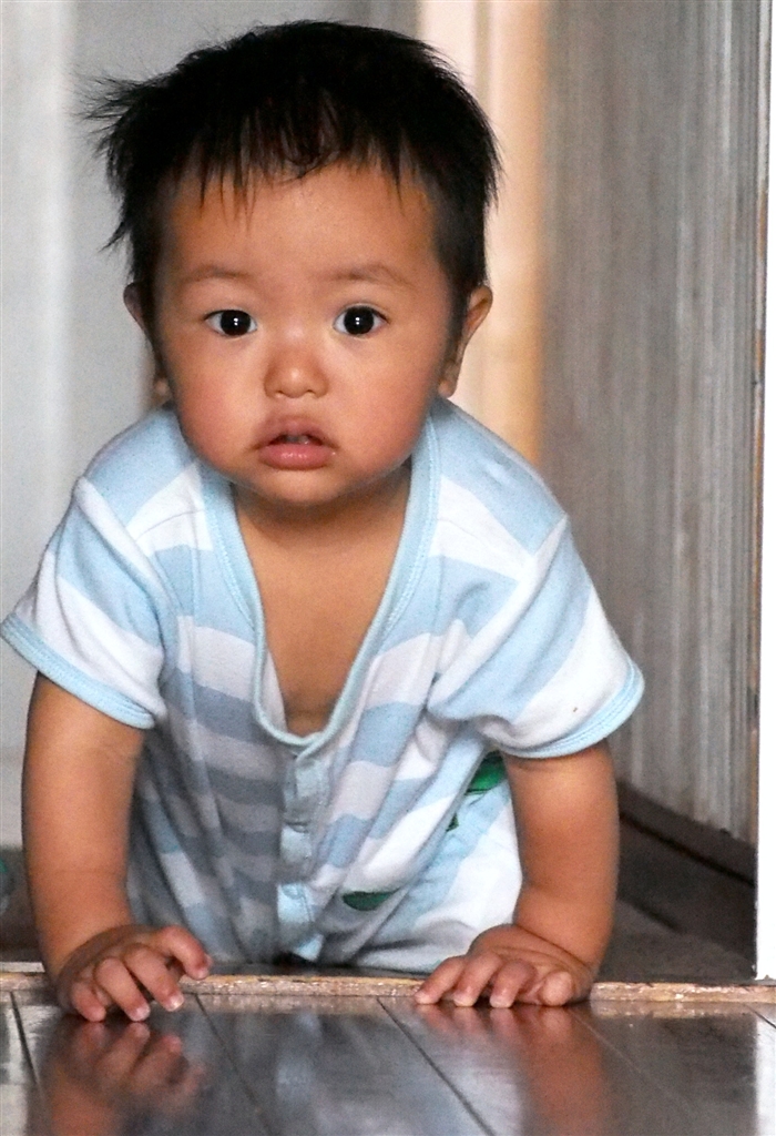 暗い廊下を歩く 赤ちゃん