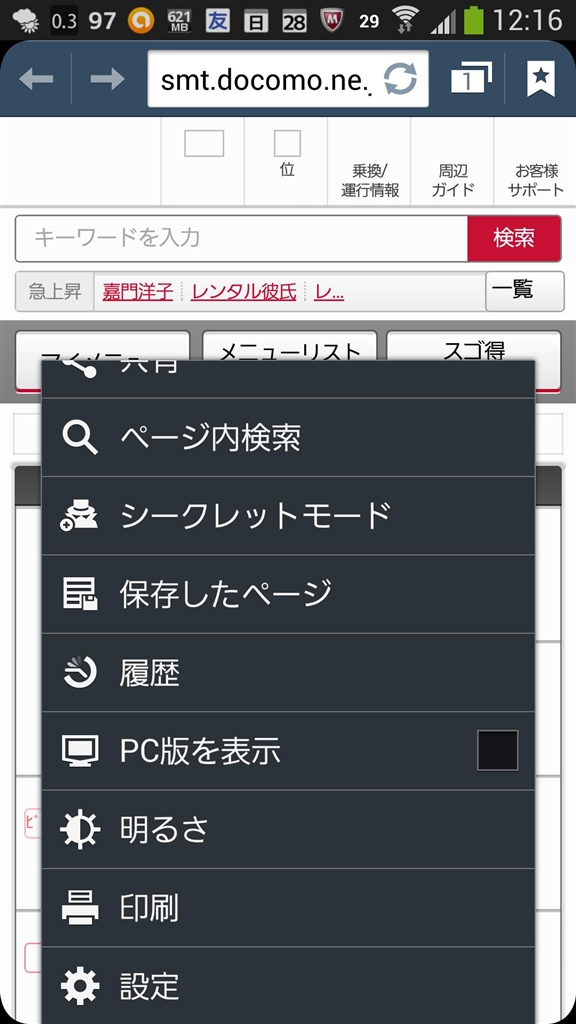 『@ブラウザーを起動した状態で端末左下のメニューをタップし設定を選ぶ。』サムスン GALAXY S4 SC-04E docomo 霞小僧さんのクチコミ掲示板画像1/4