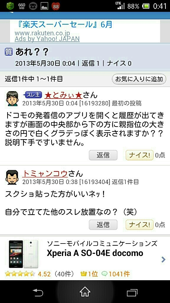 SONY Xperia A SO-04E docomo 上段突きさんのクチコミ掲示板画像1/1