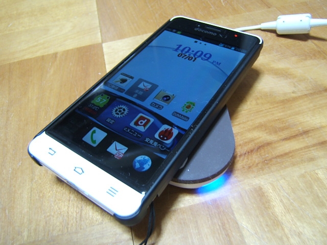 純正ワイヤレスチャージャーで充電中(青いランプ点灯)