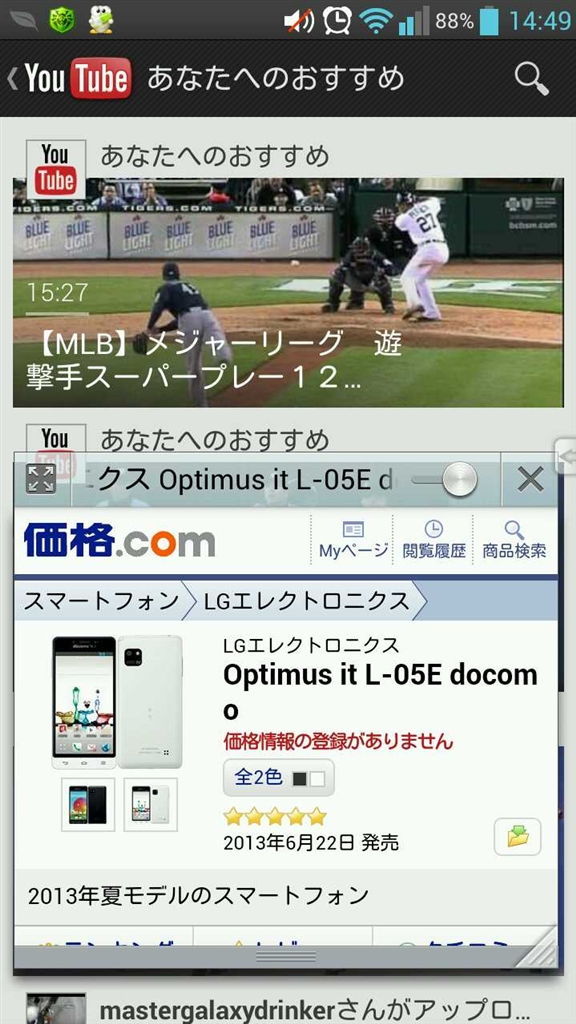 LGエレクトロニクス Optimus it L-05E docomo ys499htvさんのクチコミ掲示板画像1/1