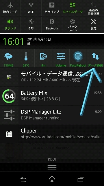 『Xperia UL〜敢えてモバイルデータスイッチを追加』パナソニック ELUGA P P-03E docomo りゅぅちんさんのクチコミ掲示板画像1/1