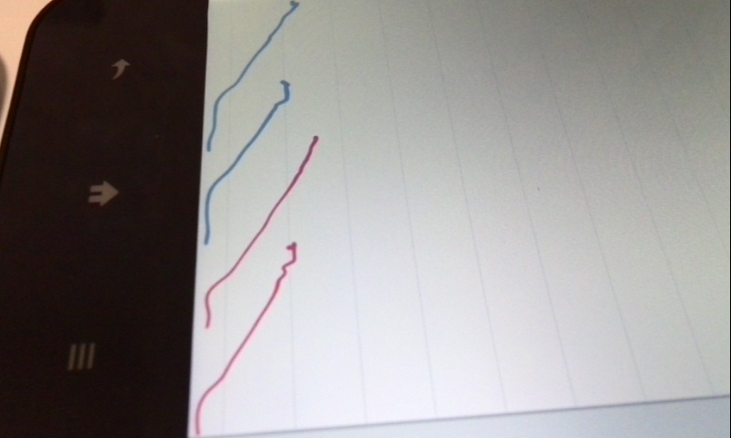 書きノートで下部まで直線を引こうとすると、吸い寄せられるように線が曲がります。