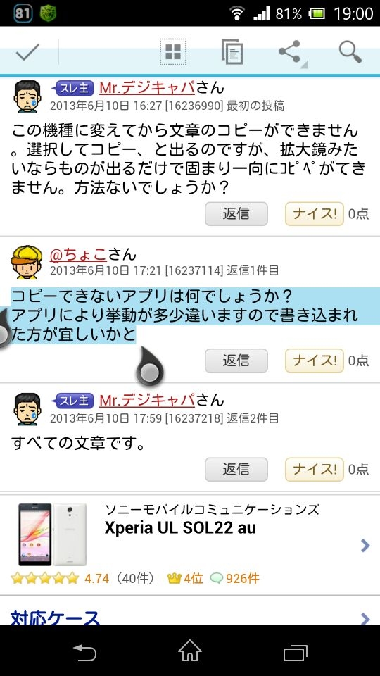 SONY Xperia UL SOL22 au @ちょこさんのクチコミ掲示板画像1/1