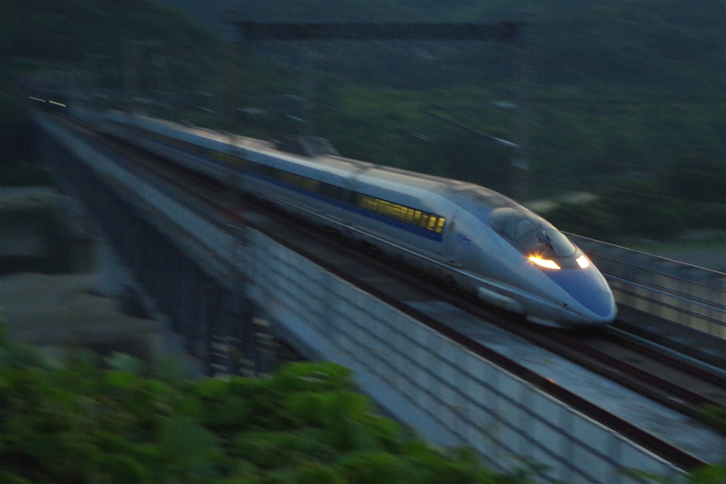 山間を貫く橋梁を飛ぶが如く(山陽新幹線 新倉敷-岡山)