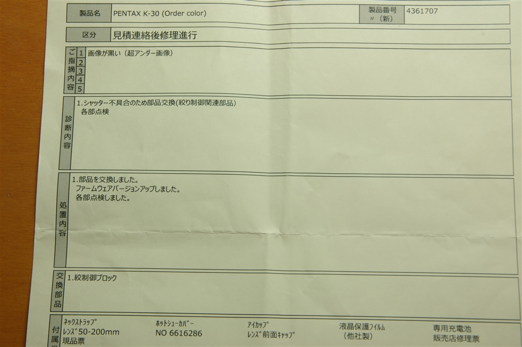 K-30の修理票