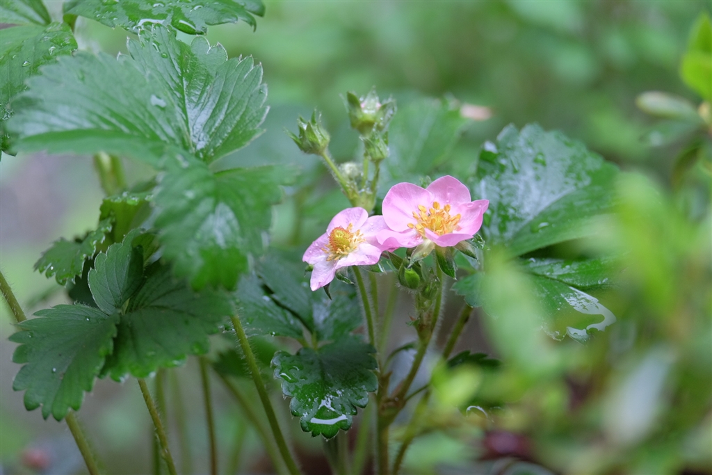 ピンク色のイチゴの花 XF55-200mm