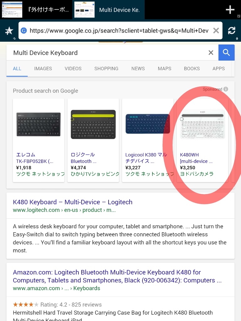 Bluetooth Multi Device Keyboard(赤丸:購入品)