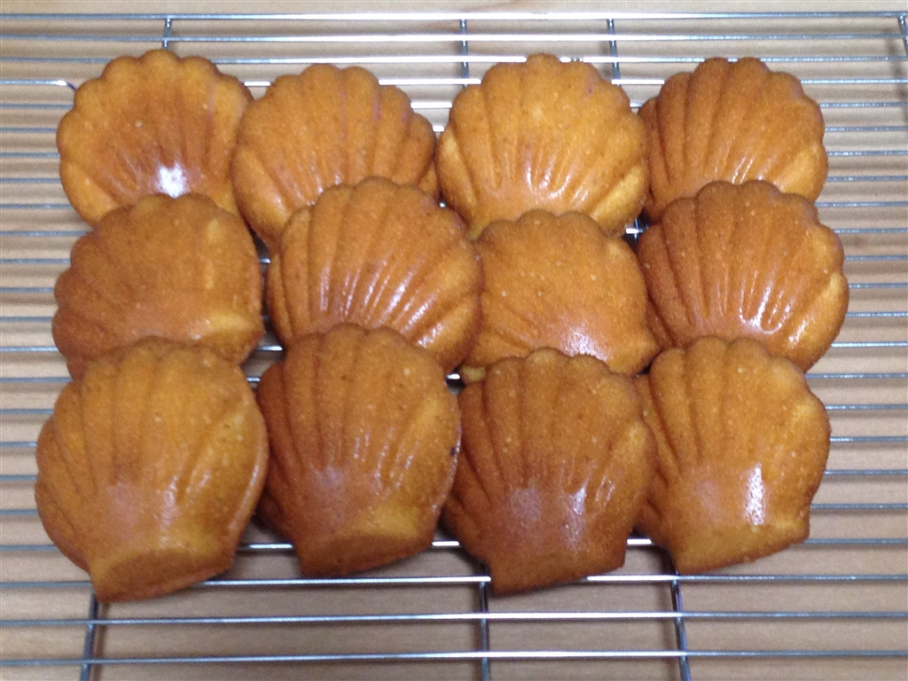 マドレーヌ型、順番をバラバラに並べました。模様側は微妙に焼き色が違います。