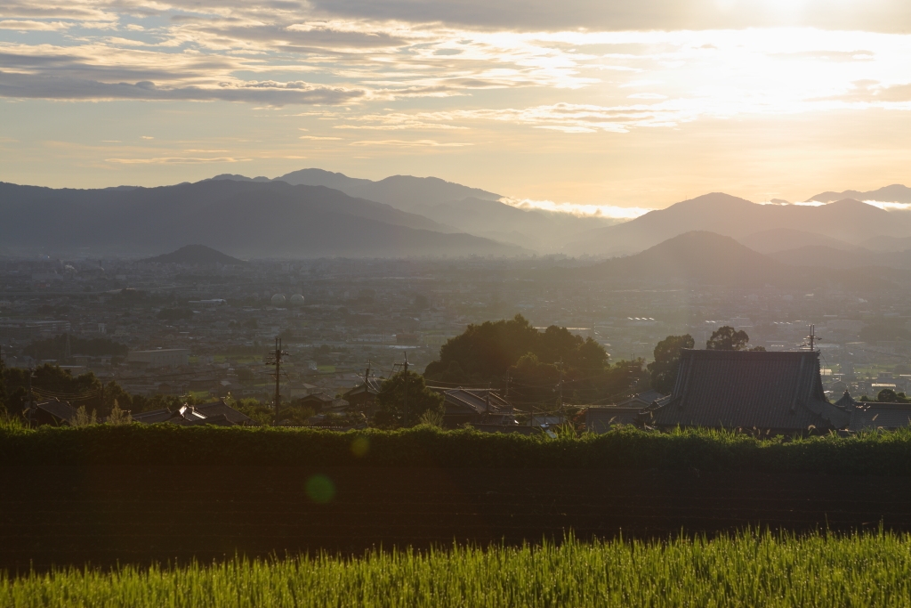 葛城山麓から大和三山+三輪山を望む