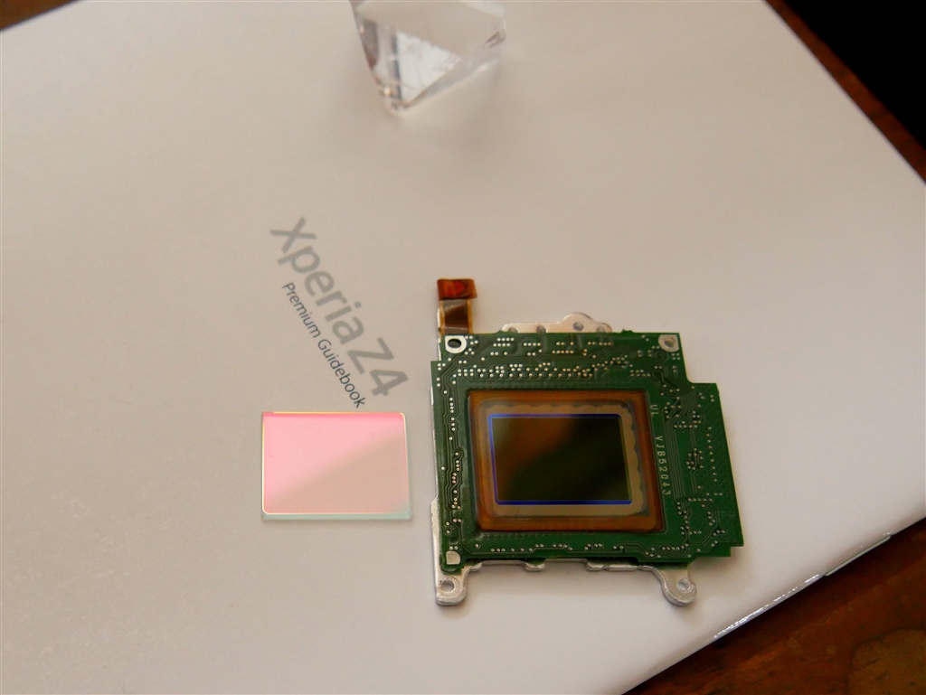 GH1の光学ローパスフィルタ(左)と撮像素子(センサ)