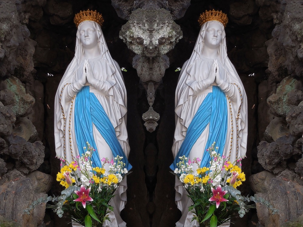 ルルドの聖母(日本では二番目に古いです。岩は、富士山の溶岩流です。)