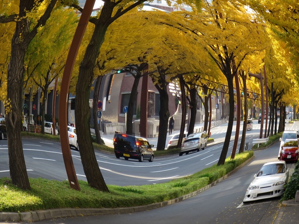 魚眼で見た銀杏並木