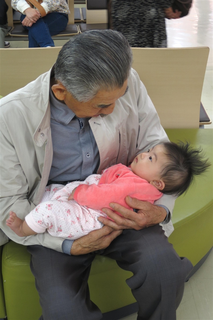 曾孫を抱く