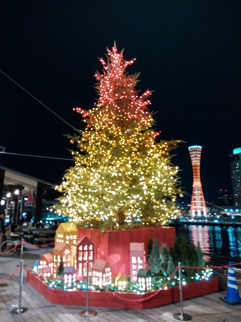モザイクのクリスマスツリーと神戸ポートタワーのツーショット