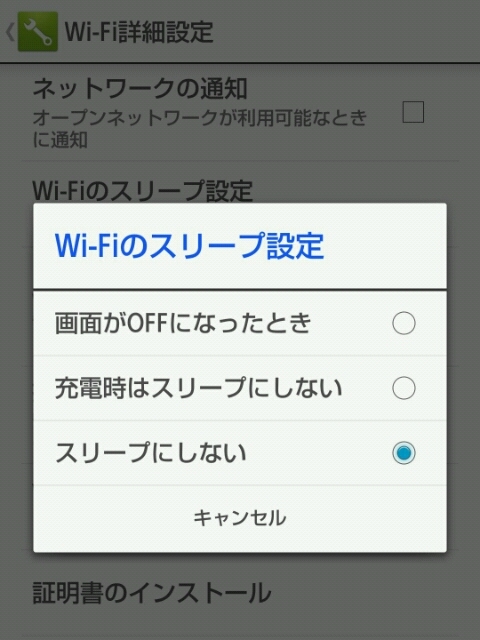 Wi-Fiスリープ設定