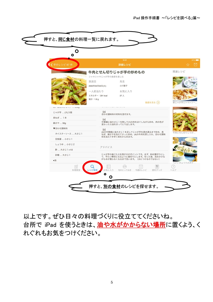 iPad操作手順書「レシピを調べる」p.5