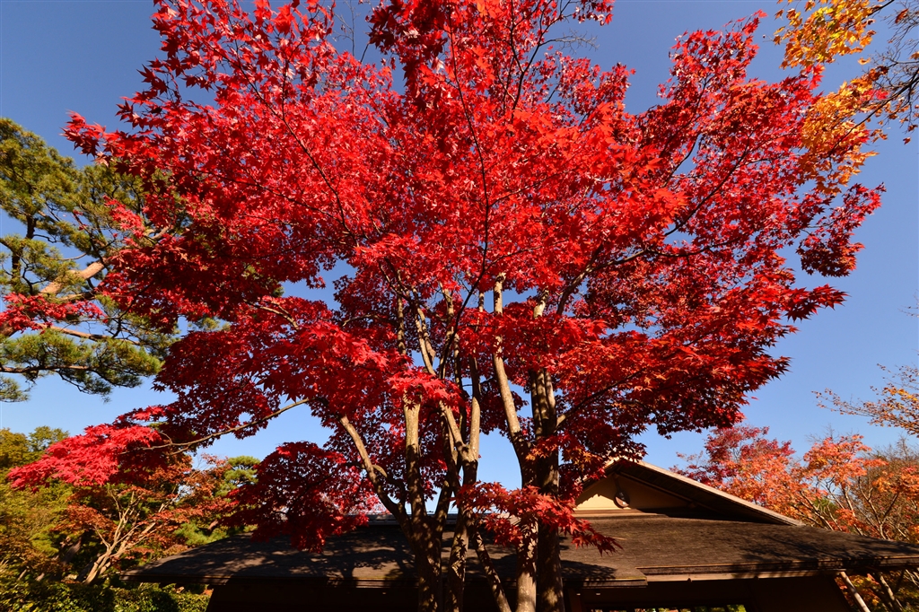 日本庭園のモミジは真赤でした