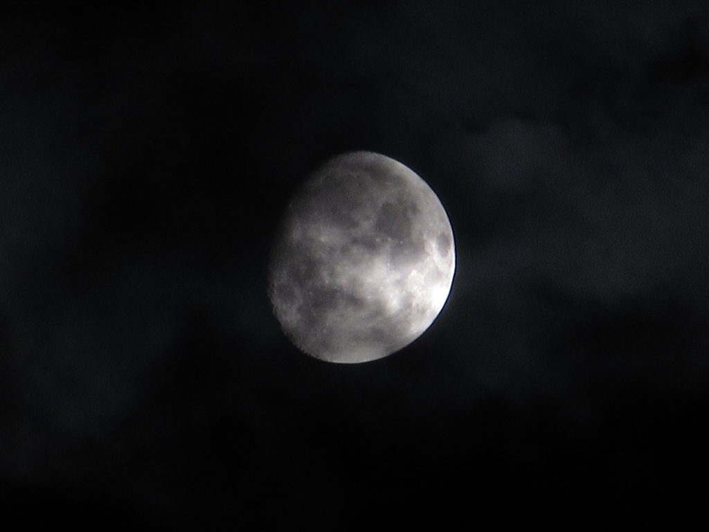 月(雲がかかっている)デジタルズーム、三脚、2秒タイマー。画質悪い。