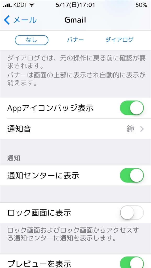 設定→通知センター→メール