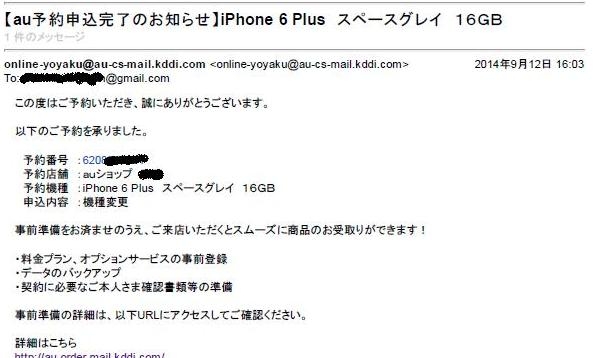 『予約メール』Apple iPhone 6 Plus 128GB au 1っちゃんねるさんのクチコミ掲示板画像1/2