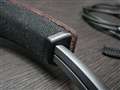 [写真8]ヘッドバンドの外面は、ハウジングのプレートやイヤーパッドと並んで、このヘッドホンの顔です。写真の通り本革シポ加工で、なんと植物タンニン鞣しだそうです。ここを合皮や本革調と表現するものは沢山ありますが、天然レザーを前面押しにするのは珍しいと思います。