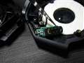 [写真14]使った工具は、T-6へクスクローブドライバーと、先細のピンセットです。ネジが長く、かなり緩めてもネジが取れないため、最終的にピンセットで摘まんで取りました。はじめは、てっきりアルミプレートが外れると思っていたのですが、意外にもハウジングがサンドイッチ構造でした。別段にこじ開ける必要はなく、普通に力を込めて開こうとすればOKでした。