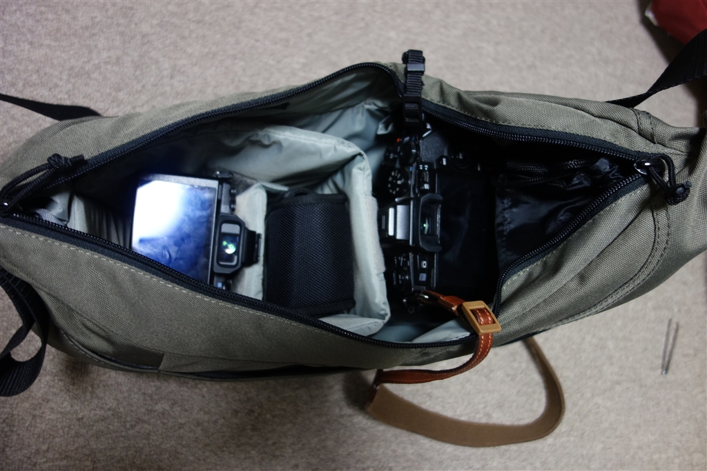 三脚とE-M1, E-M5, FL-600R, 12-40mm, 40-150mmが入ってます。